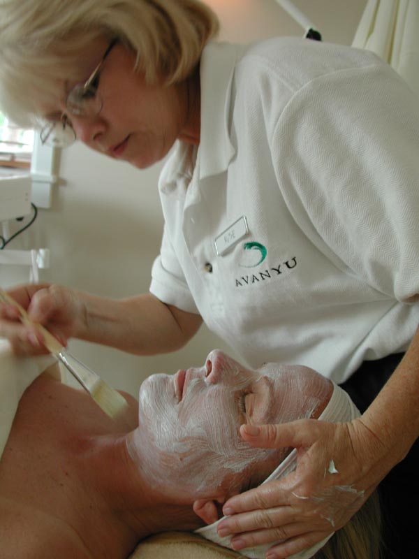 Esthetician Ruth Haper applies a mask to the author's face during a 50-minute facial at Cheeca Spa. Photo by Andy Newman/Florida Keys TDC.