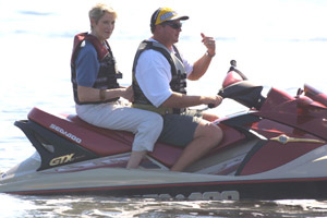 Carol Carmody, acting chairperson for the National Transportation Safety Board, caught a ride on the Sea-Doo GTX 4-TEC during an event introducing the new-for-2002 O.P.A.S. system.