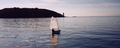 When I woke up on the Friday morning there was no wind, but it was a clear sunny day and looked as if the wind would come later so we set off towing me in my Oppy from Mylor to the start point at Black Rock off Falmouth Harbour, they let me go and I was on my own by 8.00am.