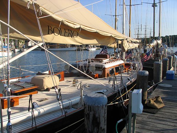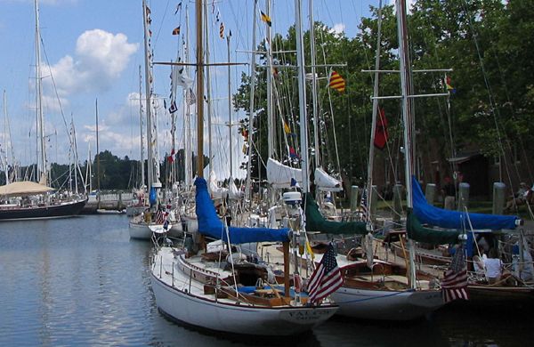 More than 1000 owners, enthusiasts, and friends of S&S were at Mystic Seaport on Saturday, July 10, to participate in the company's anniversary and see the yachts on display. All of the yachts dressed ship and flew the signal flags "7" and "5" from their spreaders signifying S&S's 75 years of yacht design and brokerage. The docks were full with people talking to the owners and touring the yachts. Some were lucky enough to test sail Sparkman & Stephens latest design, a 36 ft Day Sailor, the M36.