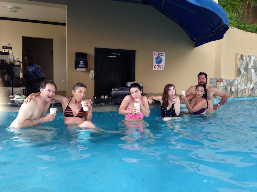 That afternoon, after sailing to Scrub Island, we do some swimming of a different nature. The resort has a hot tub, showers, poolside bar, and water slide, so our first visit is to the bar for six bushwhackers, then Isabel, Sebastian, and I take a few turns down the water slide into the small pool. Refreshing.