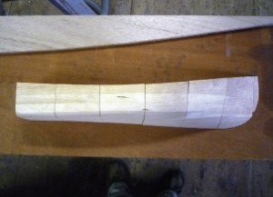 This half-model was hand-carved by Kass, then sliced into six pieces. The sections were taken off and used to create the molds that gave the boat its shape.