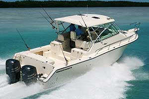 Triple F225 weigh a combined 1,782 pounds, compared to 1,608 for a pair of F350s, so you'll shave 174 pounds off the transom. I've not sure that has much effect on a boat this size, but a pound saved is always a good thing. Pricing info was not available, but I expect there won't be much price difference between triple 250s and twin 350s. Yamaha told me that Grady will offer the Express 360 with either a twin or triple rig next year, and that might include triple F350 motors, which will boost top speed to 54 mph, according to Yamaha. One hard-core angler at this meeting pointed out that many boats currently running triple V6 outboards can plane on two if one breaks down. With twins, you'll be looking at a long, slow run home if you lose an engine.
