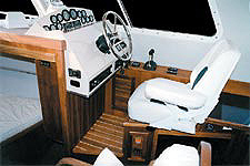 Once clear of the harbor's speed zone, we hit the "fast forward" lever and accelerated onto plane at 3,000 rpm in less than three seconds.Although we were bouncing into a short chop, we were able to talk in normal tones. Foam coring in the hull and deck and honeycomb laminate in the cabin sole not only strengthen the hull, but also act as sound barriers.