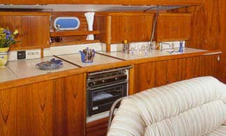 There was plenty of room to store our provisioning in the cabinets, under thesettee in the main saloon, and in the large fridge and freezer. The boat was safety-equipped to meet rules and regulations for the charter trade. We brought our own GPS, life raft, and medical kit.