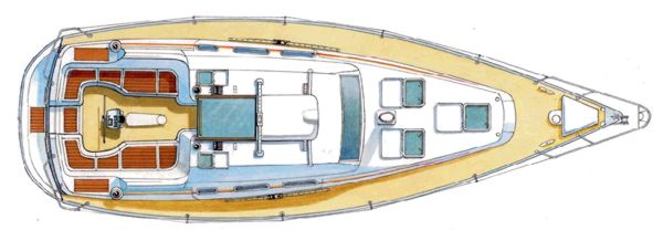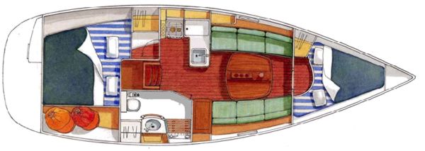 Options for the 373 include a choice of keels, and a higher sail area to displacement ratio than on the 361, although exact sail dimensions and hence the true SA/D ratio were not available at this time. The 373 will be available in both a two and three cabin version.